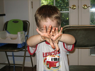 While Sammy was in the hospital, Andy received a special "Big Brother" band for identification. He was very proud of his "bandaid".